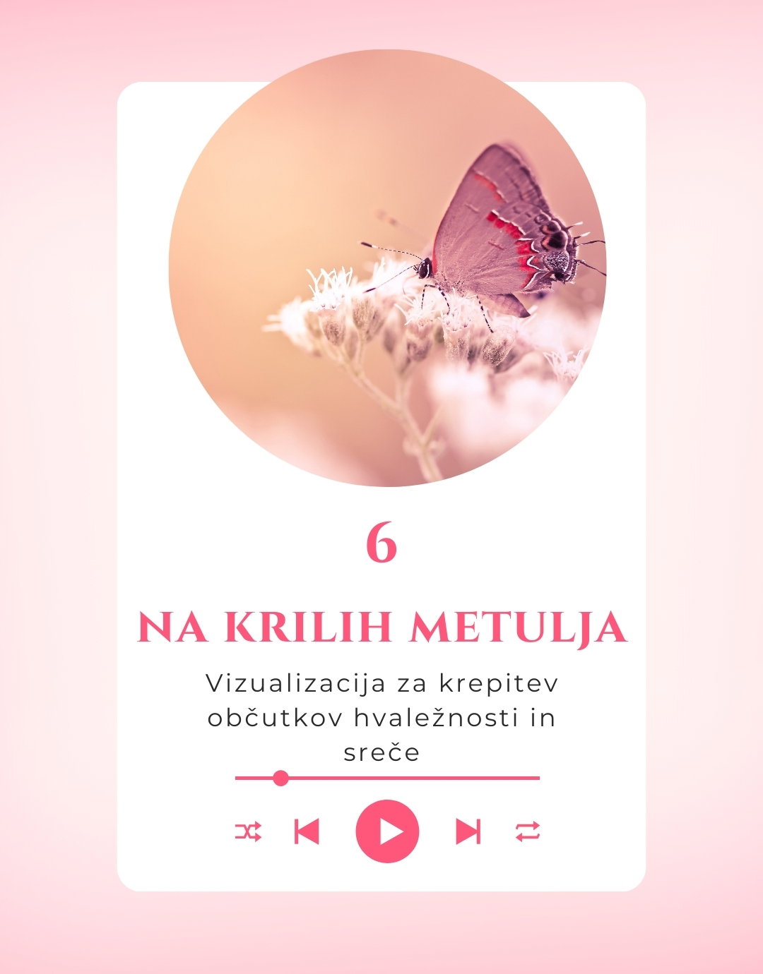 Na krilih metulja  je vizualizacija, ki ti bo pomagala obuditi občutke sreče in hvaležnosti.